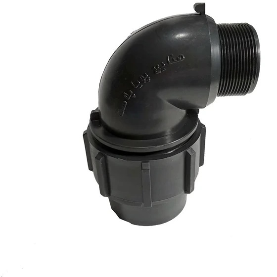 زانو نر پلی اتیلن دارای زاویه ۹۰ درجه برای اتصال شیرآلات برنجی یا پلیمری به لوله پلی اتیلن استفاده می شود.